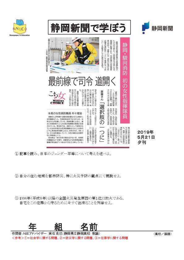 こち女=静岡・駿河消防 初の女性指揮隊員 最前線で司令 道開く 斎藤さん「選択肢の一つに」 高校/国語