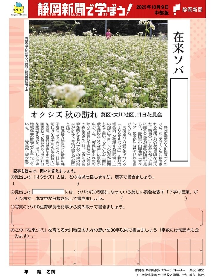 【解答例あり】在来ソバ 白いじゅうたん オクシズ 秋の訪れ 葵区・大川地区、11日花見会