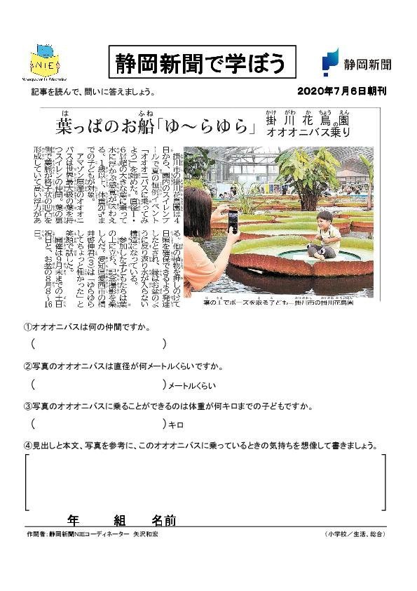 【解答例あり】葉っぱのお船「ゆ~らゆら」 掛川花鳥園 オオオニバス乗り