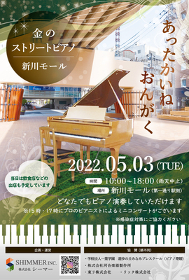15:00・17:00にプロのピアニストによるミニコンサートを行います。飲食店の出店も予定しています。