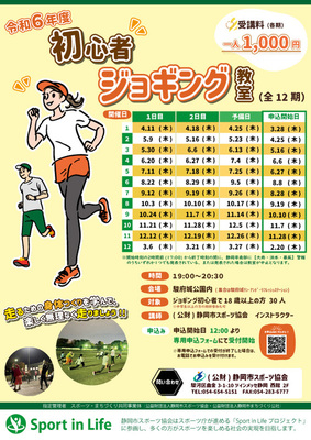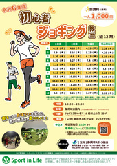 ジョギング初心者の方を対象とした教室です。走る前の準備運動から、ランニングフォーム、クールダウンまでお教えします。運動不足の解消やストレス解消、気分転換にいかがですか?おひとりでの参加はもちろん、ご家族・お友達と一緒に是非ご参加ください。
