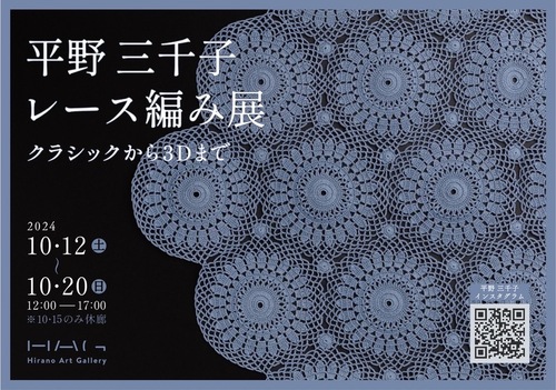 この度、Hirano Art Galleryでは、「平野三千子 レース編み展 クラシックから3Dまで」を開催いたします。