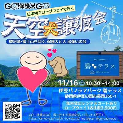 ロープウェイで天空犬に。駿河湾を望み富士山を仰ぐ伊豆パノラマパーク碧テラスで初開催 GO!保護犬GO 保護犬と人出逢いの会