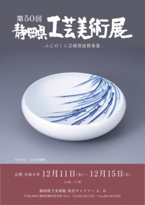 1975年「第1回静岡県工芸美術展」として一般公募が始まり、本年度は第50回となります。陶芸 ・染織 ・木竹 ・漆 ・金工 ・七宝 ・諸工芸等、意欲あふれる作品を募集し、展示します。