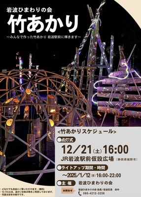 岩波ひまわりの会や地域の皆さんが、不二聖心女子学院に自生している竹を使い、何ヶ月もかけて作ってきた「竹あかり」、JR岩波駅前に輝きます。