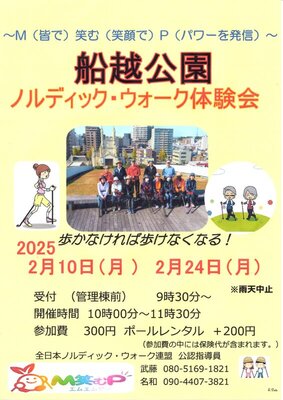 - 参加費300円 ポールレンタル+200円(参加費の中には保険代が含まれます)