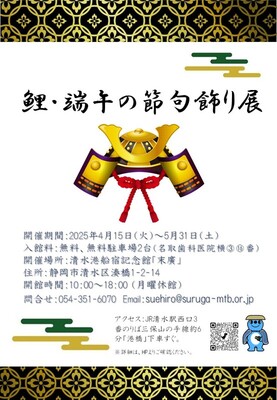 清水次郎長が晩年営んだ船宿を復元した施設、清水港船宿記念館「末廣」にて、毎年恒例の端午の節句飾展を開催します。