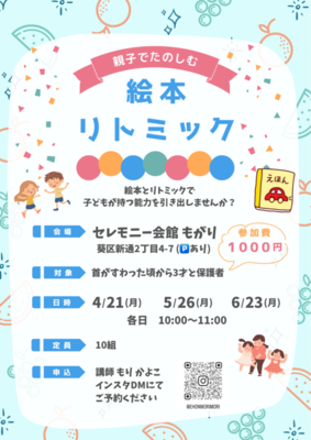 0~3歳親子で楽しむ 五感で楽しむ 絵本リトミック【要予約】