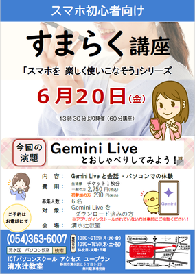 Gemini Liveは、スマホやパソコンをもっと便利にしてくれるお手伝いツールです。普段の作業を簡単にしたり、わからないことを調べたりするのを助けてくれるので、初心者の方でも安心して使えます。