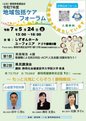 5月24日(土)13:00〜16:00、しずぎんホールユーフォニア アゴラ静岡8階にて令和7年度地域包括ケアフォーラムを開催します。