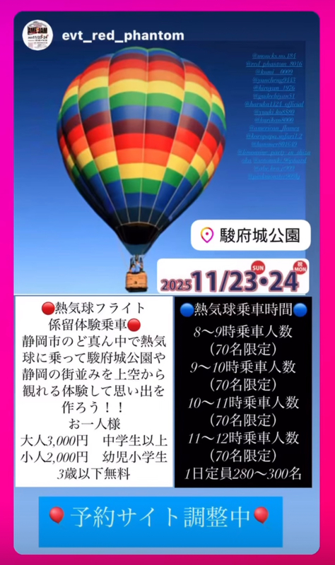 静岡市のど真ん中で熱気球に乗って駿府城公園や静岡の街並みを上空から観れる体験して思い出を作ろう!!