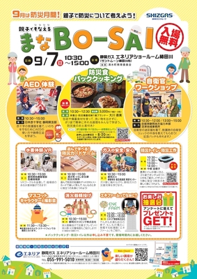 エネリアショールーム柿田川にて、「親子でそなえる まなBO-SAI」を開催いたします。