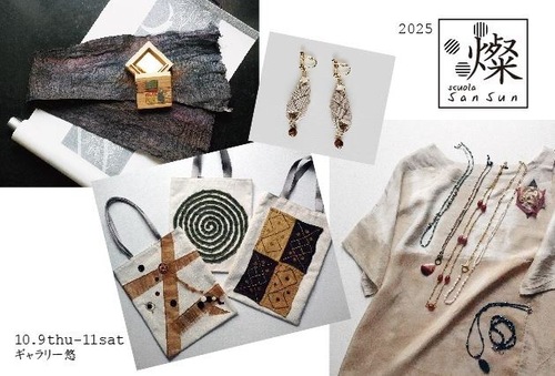 伝統に根差しながらも、自由な発想の手仕事にこだわる3人がグループを結成。相乗効果を超えた三乗効果で、タピストリー、洋服、バッグ、アクセサリー、パネル等が誕生しました。出展は現代表装・神戸美知子、真田紐クリエーター・内山あき江、キモノリメイク+・竹川佳須美。
