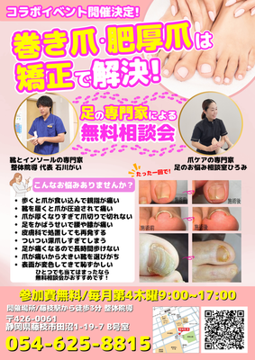 爪の専門家である井原ひろみがタッグを組んで、藤枝市内で爪のお悩みを抱えている方にマンツーマンで相談を承ります!