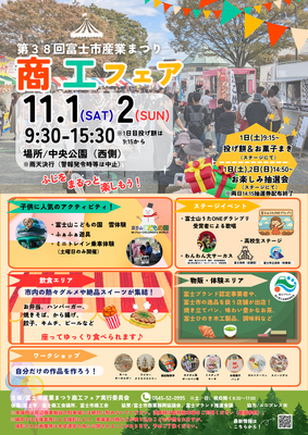 今年も地域経済の活性化を目的に、商工フェアを開催します。富士地域ならではの特産品販売や、ここでしか体験できないイベントが盛りだくさん。皆さんのご来場をお待ちしています。