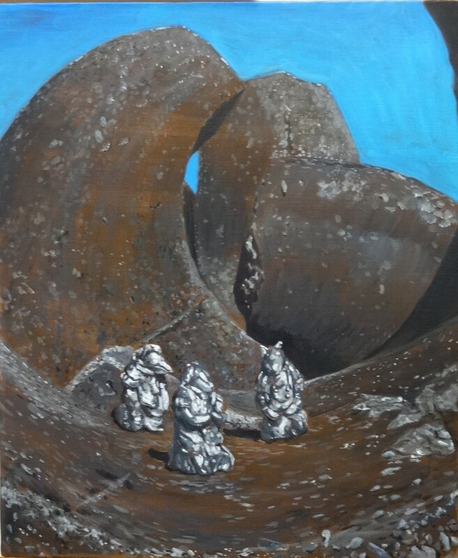 法隆寺五重塔内の塑像群から着想を得た素朴な人形が、日常の様々な場所に現れます。絵を描くことの意味を問いつつ、それぞれの体験や思いを重ねていただけたら幸いです。鷹匠あまねくさんでの展示に、新作5点ほど追加して展示いたします。