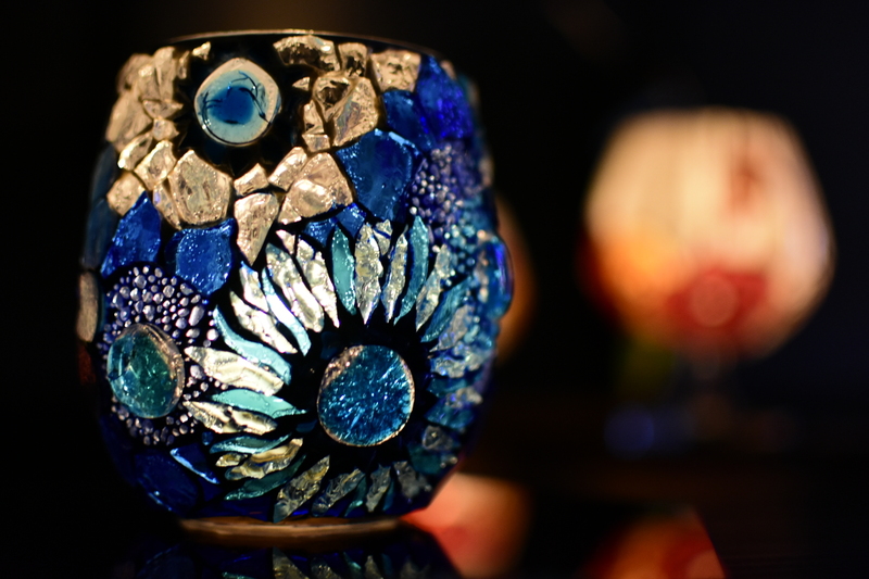 ガラスの色が蝋燭の揺らぎに合わせて