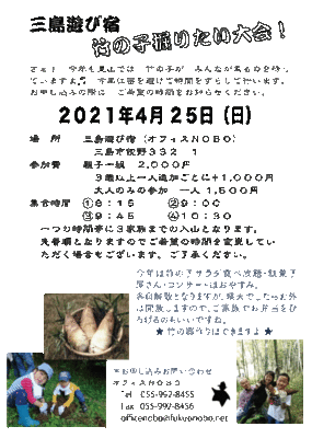 御存知! 旅芸人、福尾 野歩主催!青空の下で竹の子掘りたい!三島遊び宿の里山で 親子で!お友達と!竹の子掘りをしよう♪掘った竹の子全部お持ち帰り!