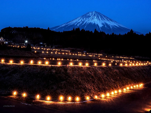 棚田を彩る3776本の竹灯籠と富士山の絶景!