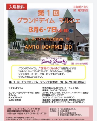 おひさま食堂マルシェが今回より名前が変わりグランド・デイムマルシェとなりました。今回も50店舗近い素敵な出店者さんたちが揃いました。