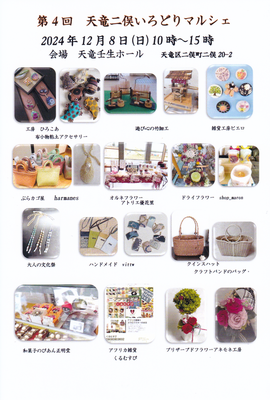 第4回天竜二俣いろどりマルシェ開催です。クラフト作家さんの販売とワークショップです。