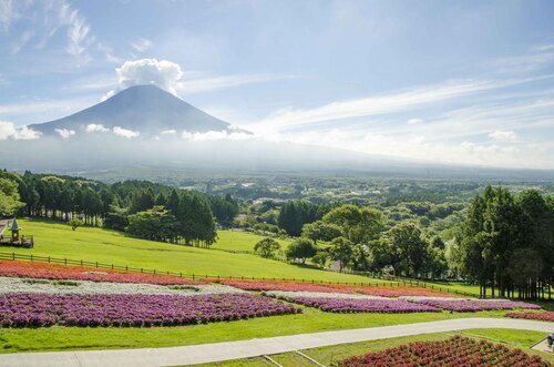 富士山を望む花畑には約5000株、国内最大級の「サンパチェンス」の花畑が登場します。10月中旬頃まで咲くので、花畑の中に入っての写真撮影もおすすめです。