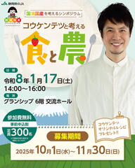 人気料理研究家のコウケンテツさんをお招きし、「国消国産を考えるシンポジウム」を開催します。