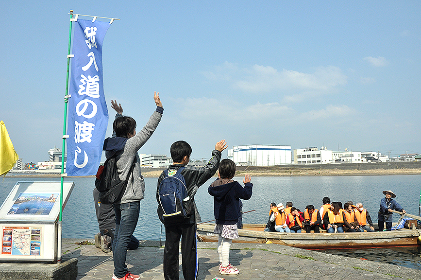 ぬまづの宝100選に選定されている我入道の渡し船。狩野川をまたぐ大きな橋が完成するまで、川を渡る人たちの日常の足として愛用されていたとかなんとか。