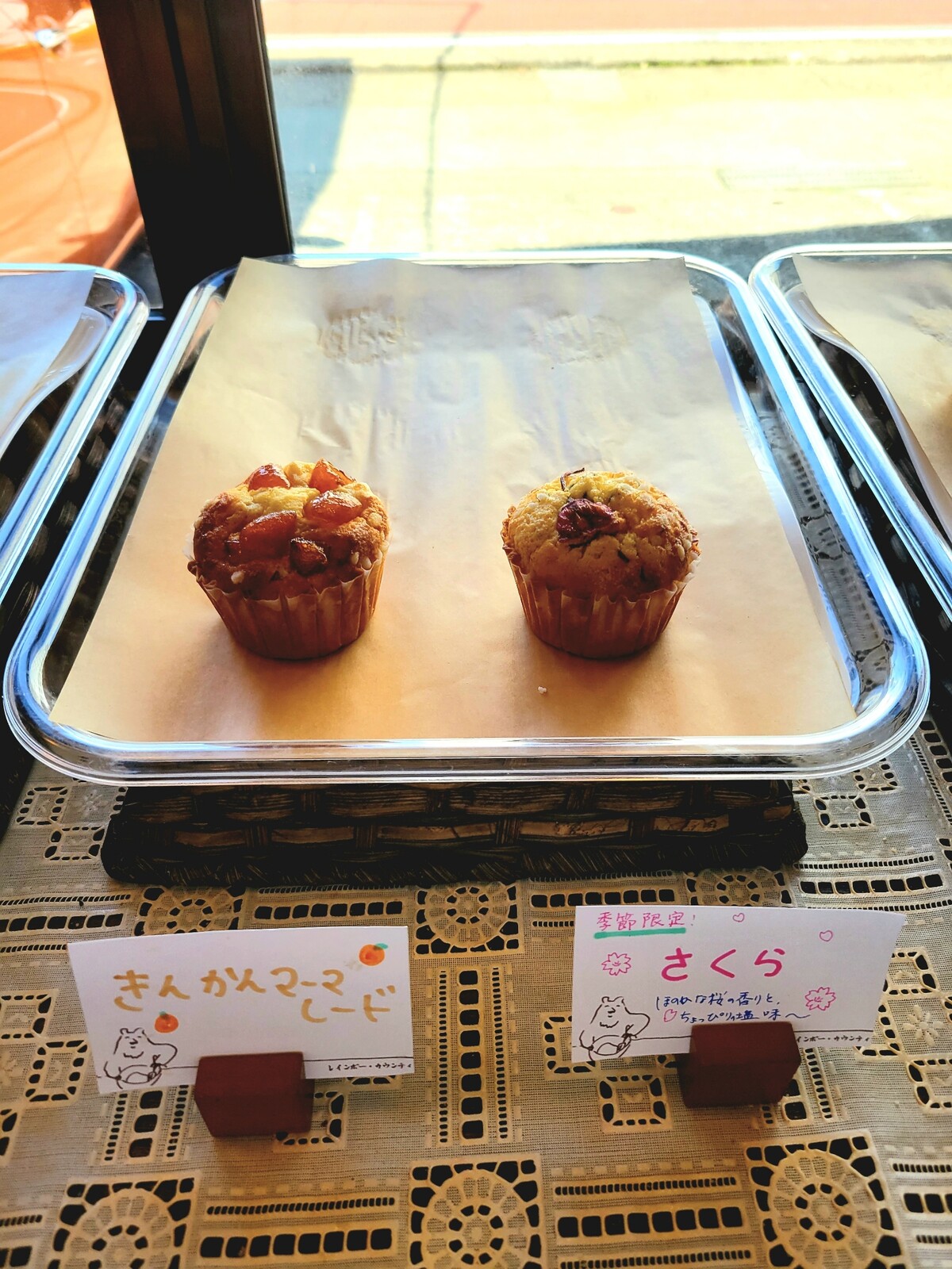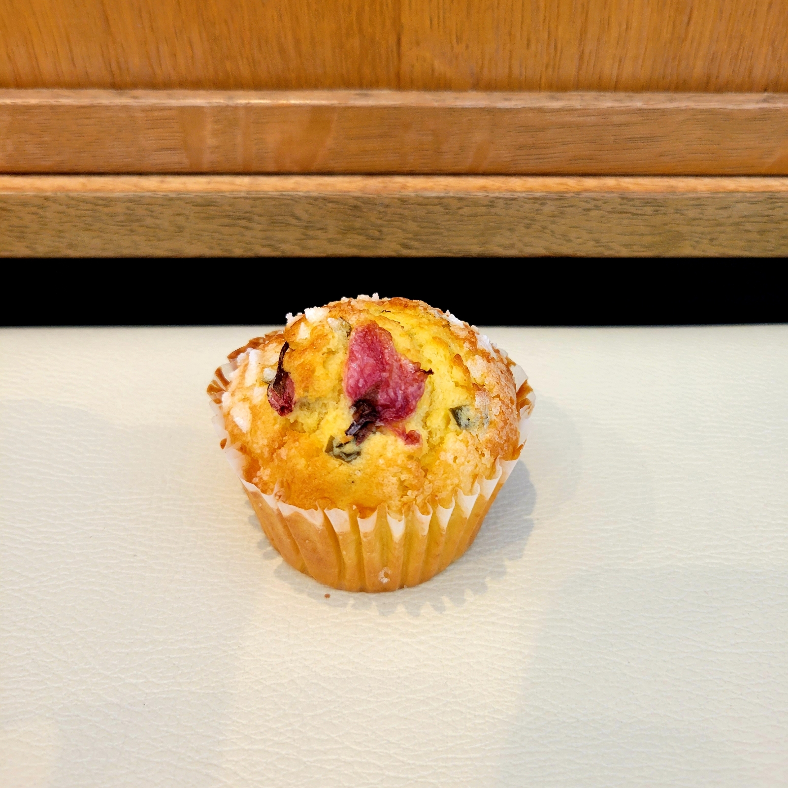 上部に桜がのっていて、マフィンの食感がザクザク美味しい。