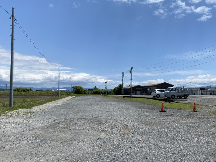駐車場はけっこう広い。たくさんの人が働いているのでしょうか。(撮影時は日曜日なのであまり車は停まっていません)