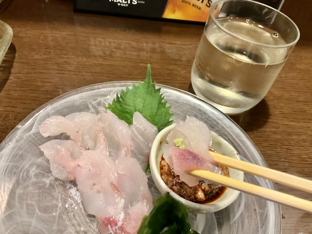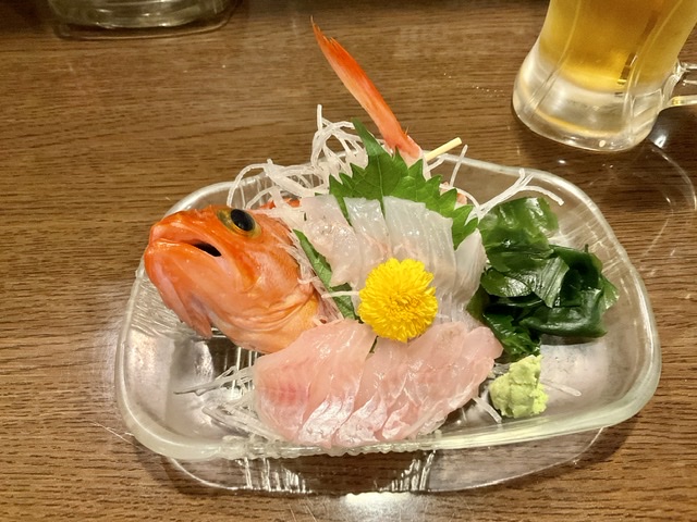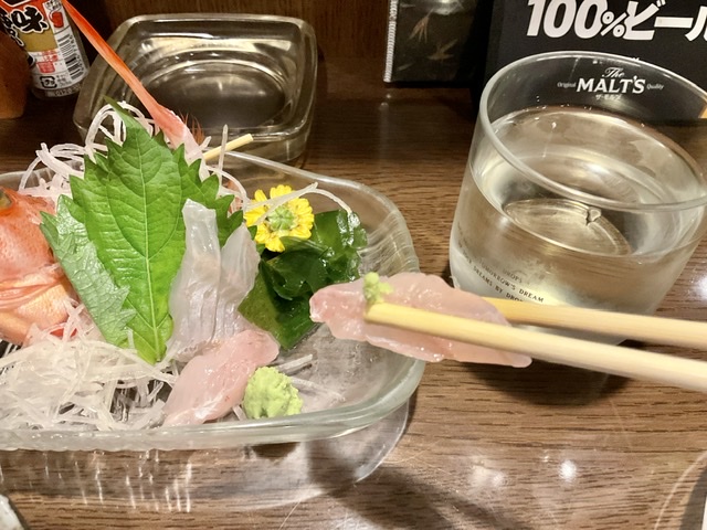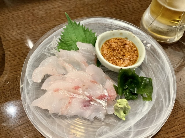 迷わずこの2種類のお魚と生ビールをオーダーしました。