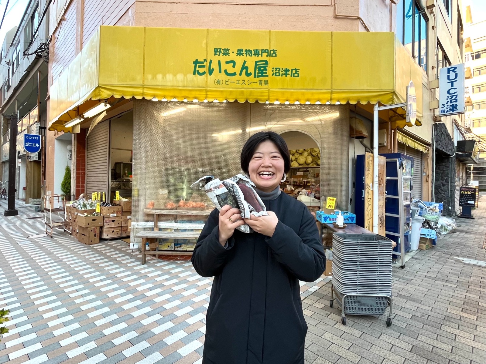 あれやこれや話していると、、、なんとだいこん屋さん、2023年の3月でこの場所から、ご自宅のある南本郷町へと移転してしまうそう。商店街で通るたびに元気に声かけてくれるおじちゃんおばちゃんと会えなくなっちゃうの寂しいなぁ。甘くておいしい焼き芋、大切にいただきました。おすすめは温めて「バター」を乗せるとより美味しいんだそう。また買ってやってみようっと。3月までまだまだお世話になります!