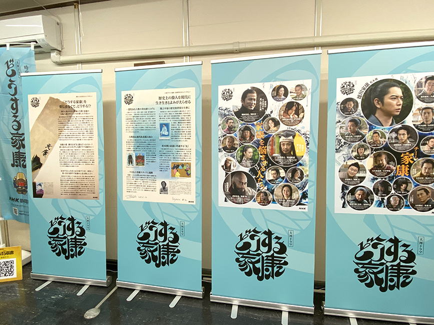 沼津市役所1階の多目的スペースで現在絶賛放映中の大河ドラマ「どうする家康」の静岡巡回パネル展が開催中。6月2日まで。