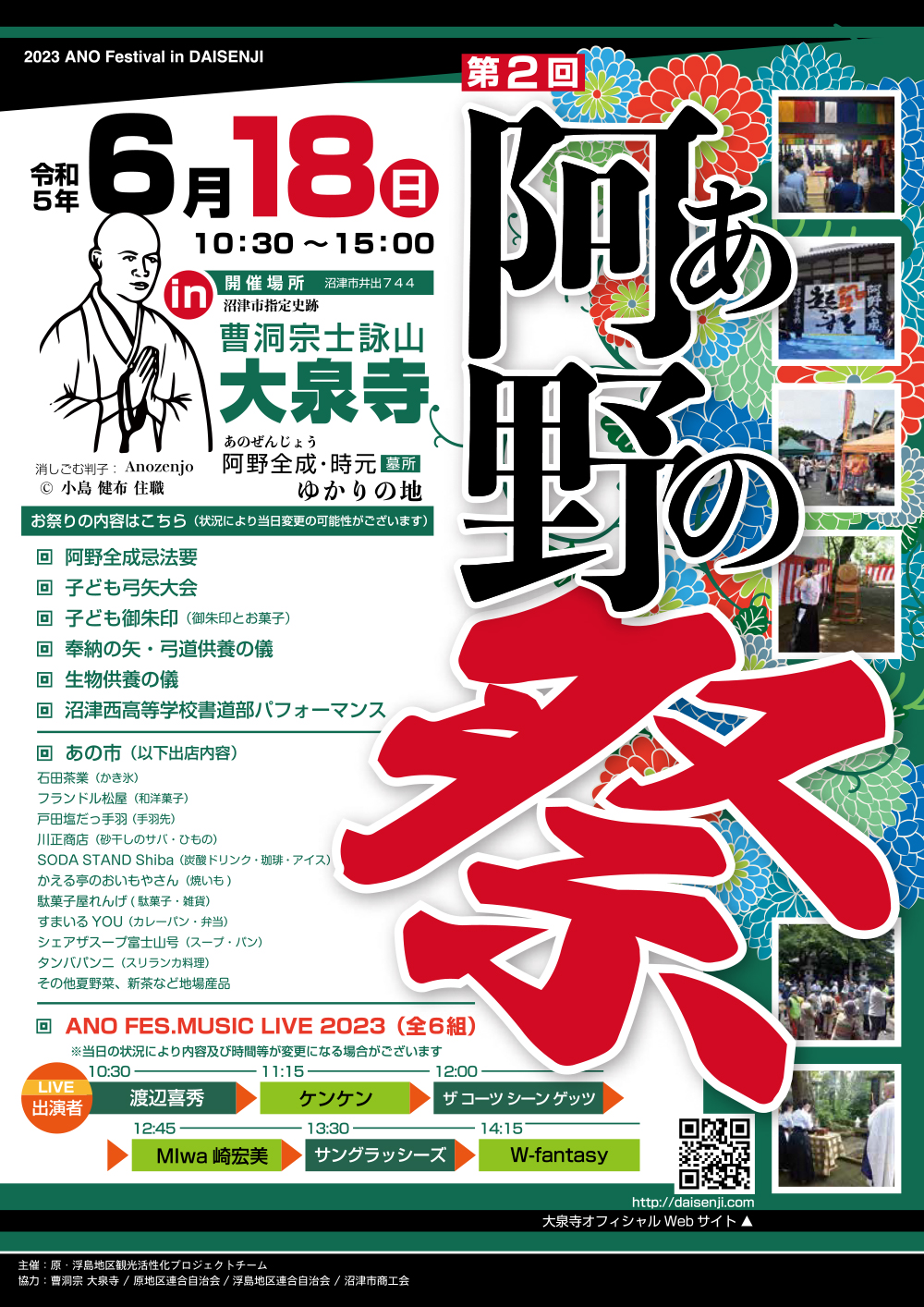 奉納の矢・弓道供養、子ども弓矢大会など弓を得意とした(と言われる)全成にちなんだ催しがラインナップ。さらに、ANO FES.MUSIC LIVE2023という音楽ステージもあるようでワクワクしてきますね。開催日は6月18日の日曜日!10時30分から15時まで。たしか去年は結構暑かった記憶があるので、熱中症に注意しながら楽しみたいですね!!