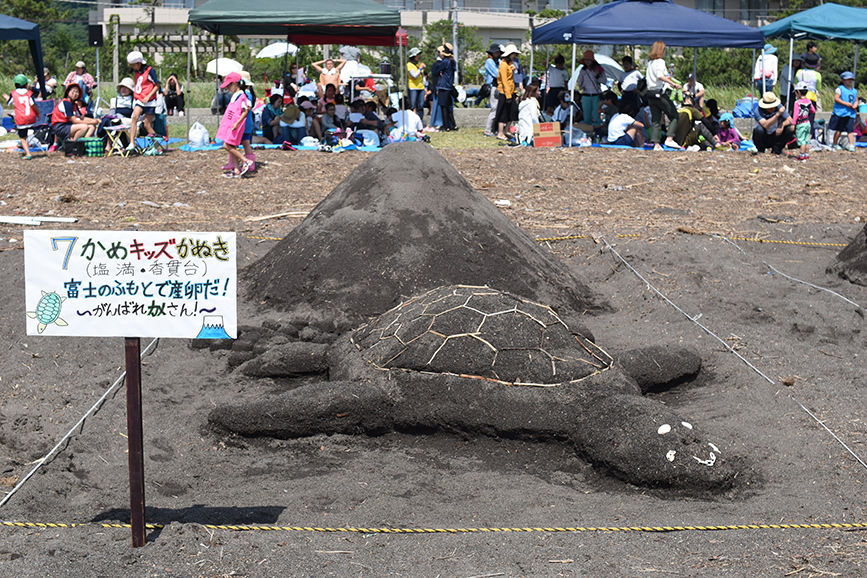 参加は8チームで200人くらいの小学生が力作を競います。賞を目指すのももちろんですが、学年を超えた地域のチームワークでキャッキャいいながら砂と戯れるのって楽しいですよね。