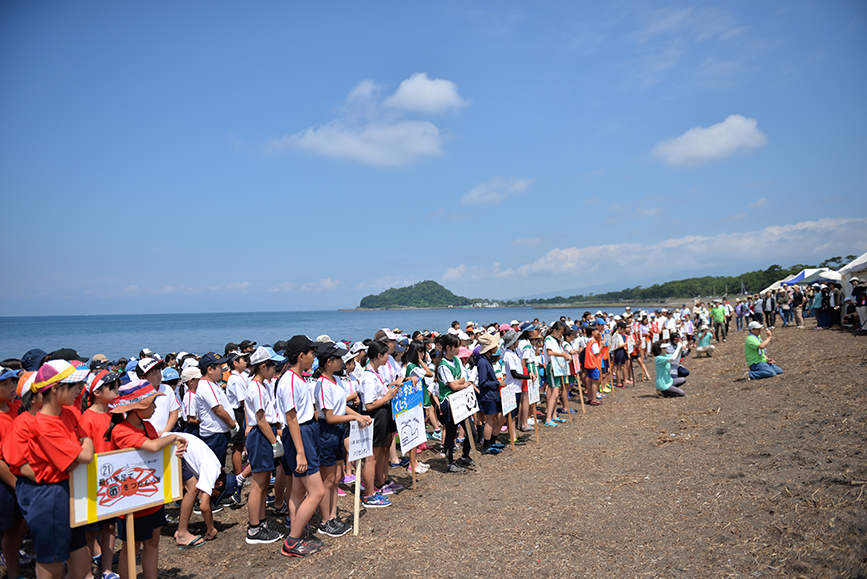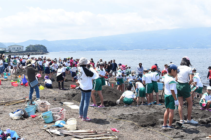 昨年、4年ぶりに開催された砂の造形大会。志下の海岸で小学生たちがでっかいサンドアートをつくるアレです。