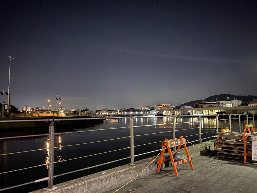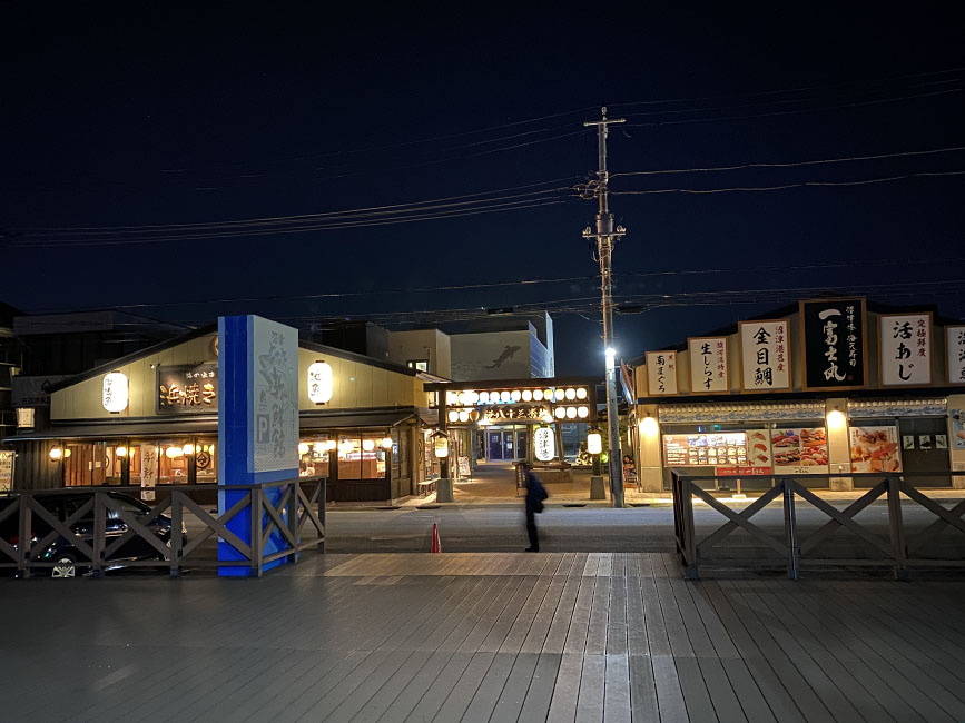 それにしても夜の沼津港は雰囲気がいい感じ。混雑してないし、やってるお店は少ないけど、地元だからこそちょっと散歩とかデートなんかに使えそう。