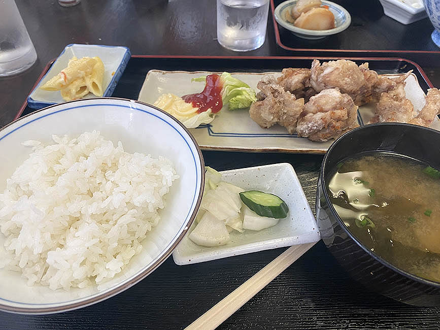 やぎわ食堂のメニューのなかでは、割と高価なからあげ定食(650円)をオーダー!
