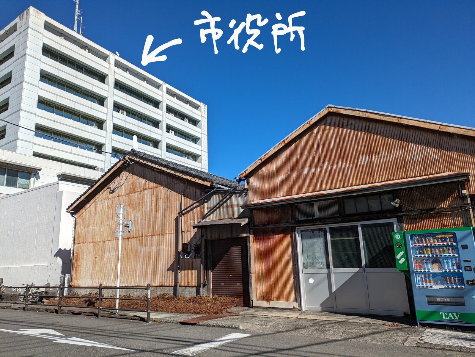 市役所の南側の建物のところにある、