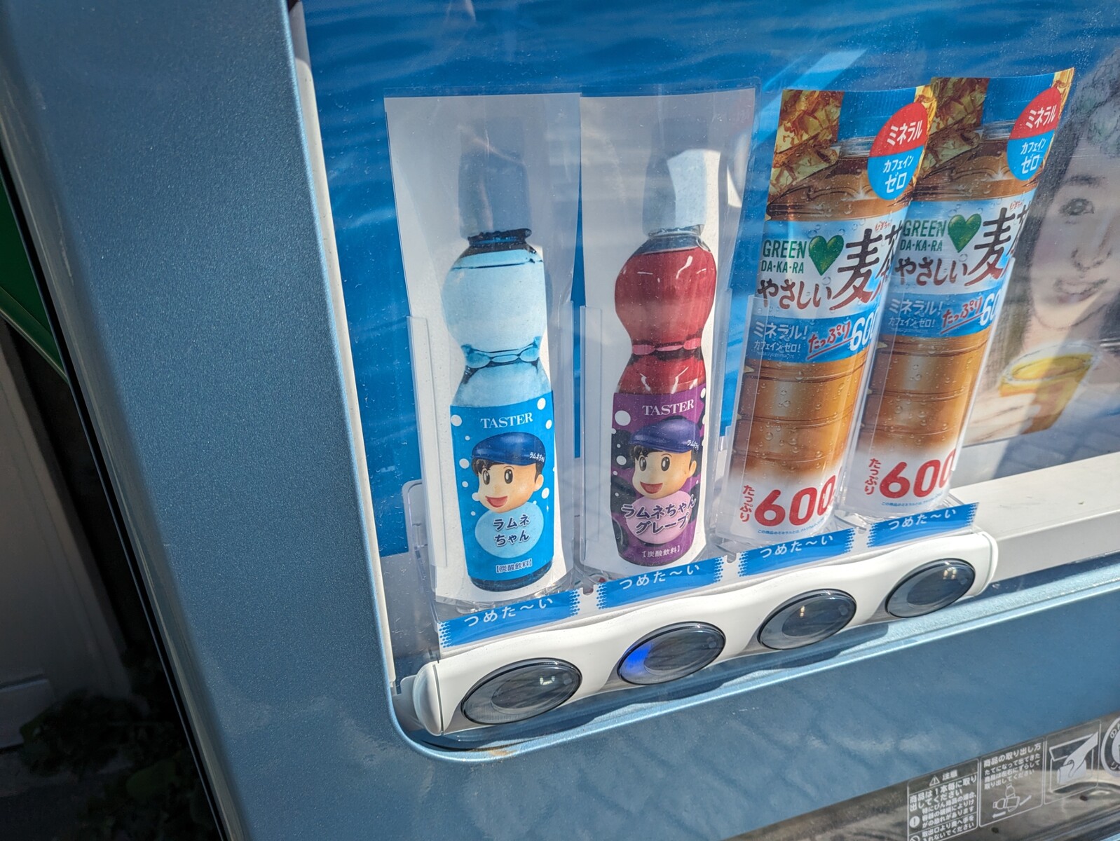 ラムネちゃん。ノーマルラムネちゃんとラムネちゃんグレープがあった。かわいい。今度買ってみよう。市役所の近くの自動販売機