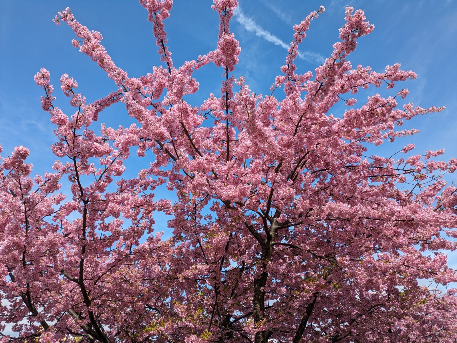 鮮やかなピンクとさわやかな青空が春が来た〜って気持ちにさせてくれます。