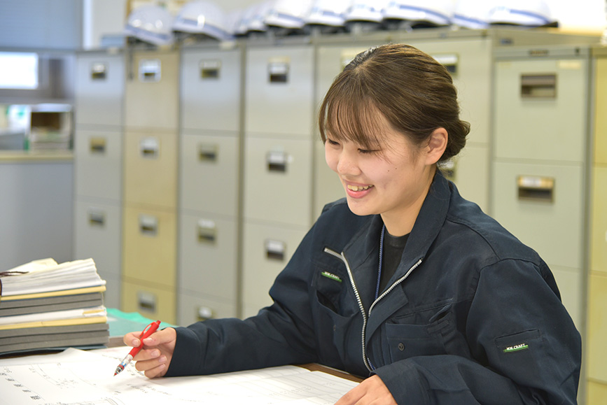 動画には若手職員と思われる人が何人か登場し、実際のお仕事の様子も垣間見えます。技術職って男性のイメージが強いですが、女性もいるんですね。