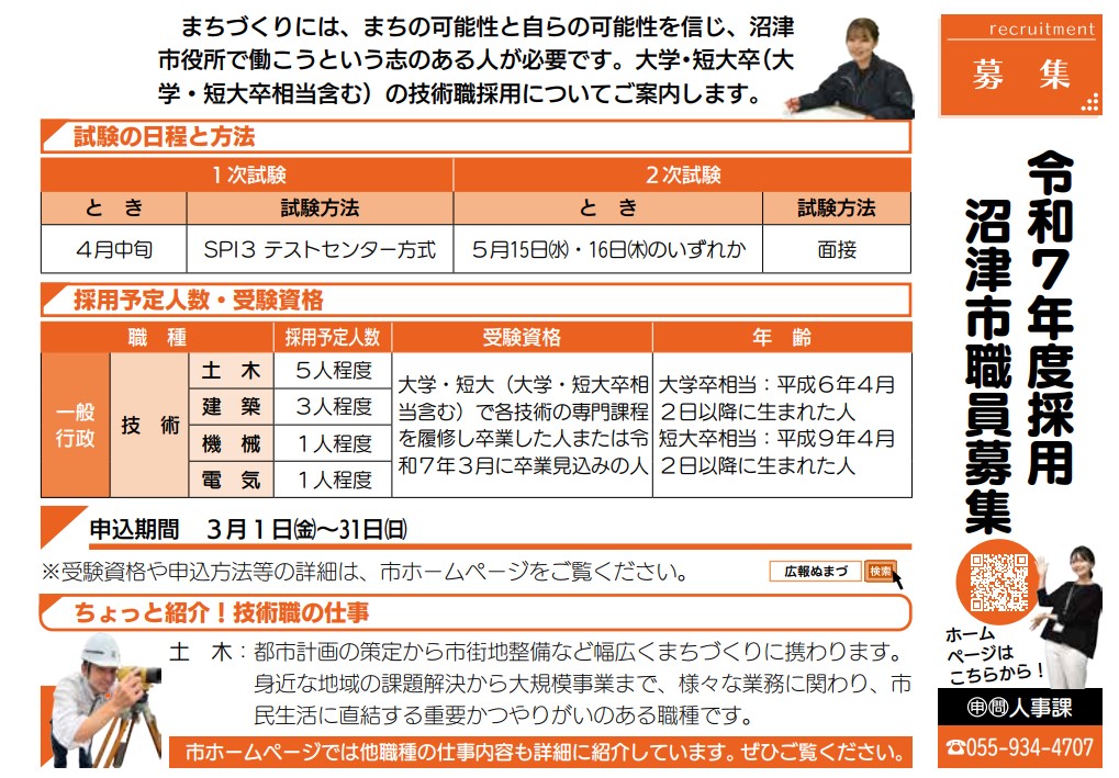 タイミングを同じくして、令和7年度の技術職採用もスタートしたようです。