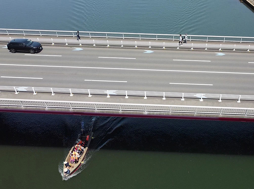 今では観光コンテンツのひとつとして、木造の船が期間限定の土曜日・日曜日・祝日に運航しています。ちなみにこの木造の船。けっこうレアらしい。