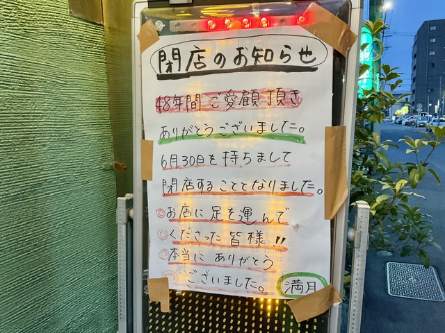 十五番街の満月は、6月いっぱいで閉店されるとのことです。