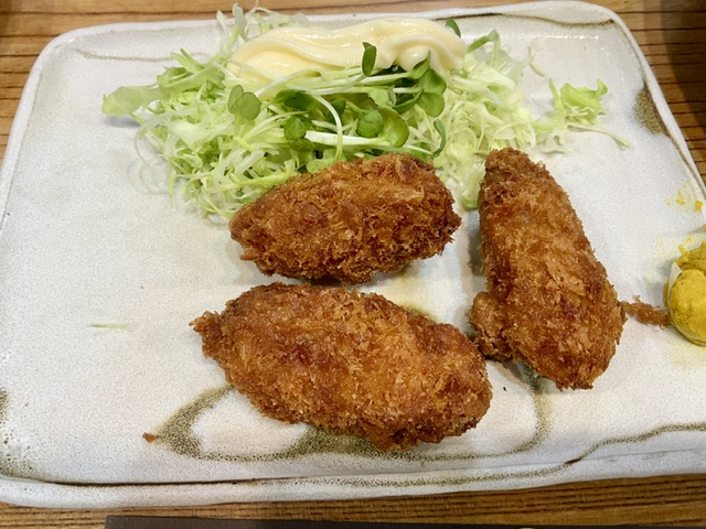 お約束のカキフライなどをいただきつつ、マスターと談笑。