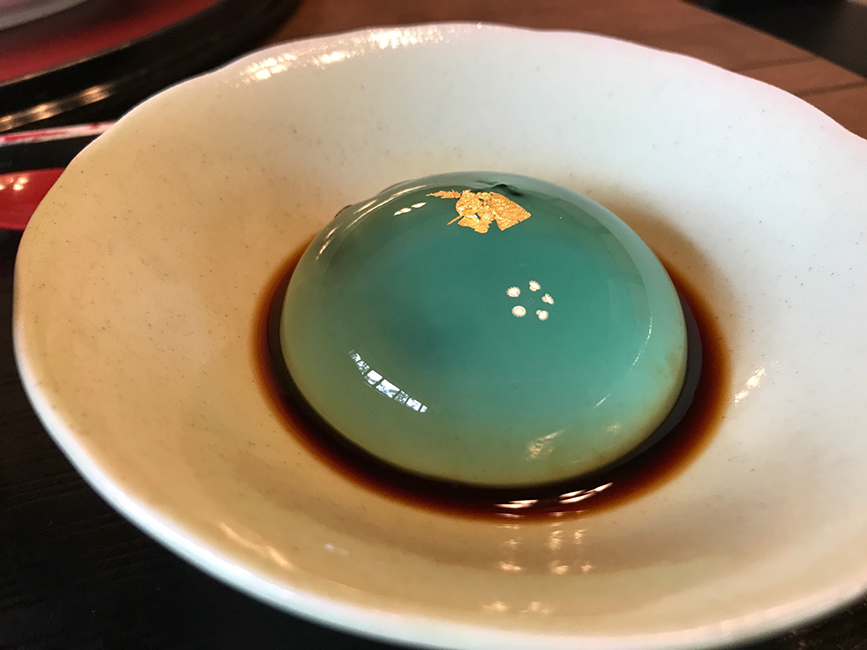 紫陽花セット極は、高級抹茶と色が変わるシロップがついた水神餅を楽しむことができるとか。水神餅といえば、藤井聡太さんがかつて沼津御用邸記念公園東附属邸で棋聖戦の対局をしたときにおやつとして食べたやつですね。(画像はノーマル水神餅)