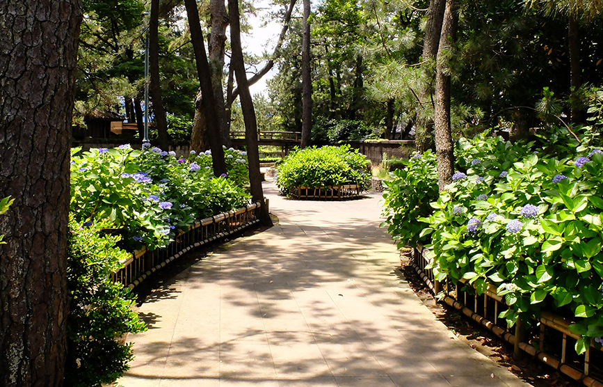 6月になると、約2300株が群生しているという紫陽花が見頃を迎えます。ちょっと前に様子を見に行ってきましたが、まだつぼみが多かったとはいえ、けっこう咲いてる。