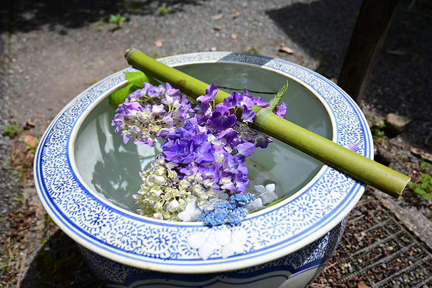 壺のなかに紫陽花の花が浮かべられててなんかおしゃれ。