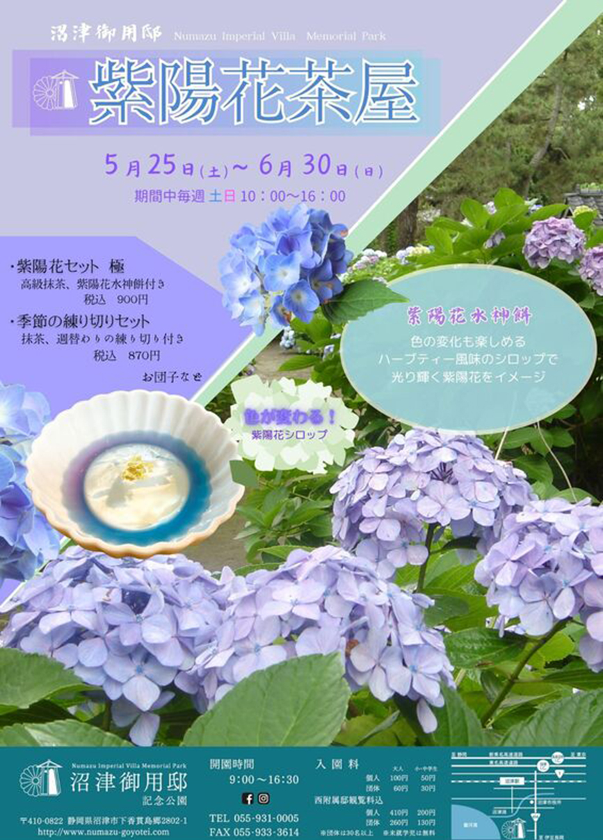 ちなみに、6月いっぱい、期間中の土日は紫陽花茶屋と題して、紫陽花を眺めながら抹茶とお茶菓子を楽しめる催しも行われているそうです。